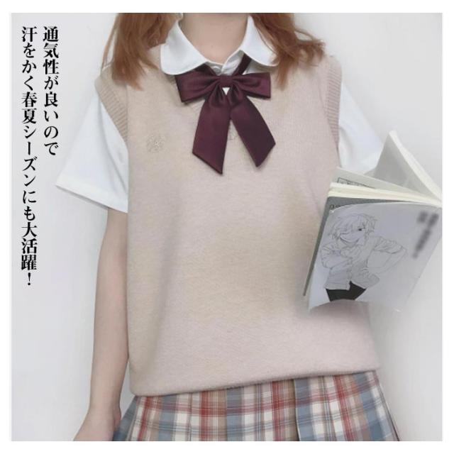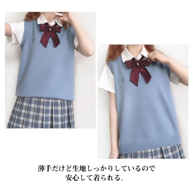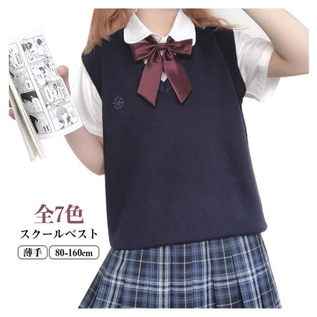 スクールベスト 制服 夏用 薄手 レディース ノースリーブ Vネック 無地 ベスト 刺? スクールセーター ニット 女子 春 夏 秋 冬 通学 学生 女子高生 高校生 プルオーバー ニットベスト セーター 学生服 高校 中学 通学 コスプレ かわいい