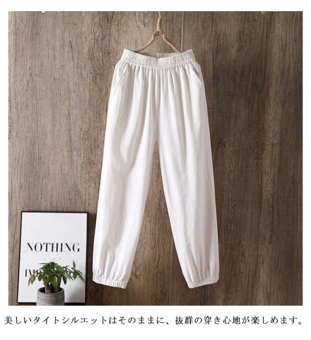 テーパードパンツ レディース リネンパンツ スウェットパンツ ジョガーパンツ リネン ロングパンツ イージーパンツ 9分丈 綿麻 綿麻パンツ 細身 美脚 美シルエット きれいめ 春夏 秋 カジュアル 無地