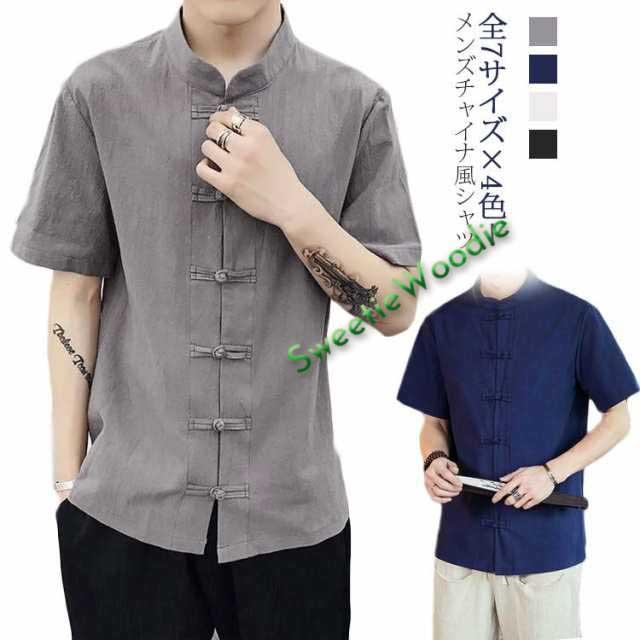 チャイナ ブラウス メンズ チャイナスタイル トップス Tシャツ チャイナボタン 前開き シャツ 半袖 無地 夏 チャイナ服 チャイナ風 中華服 中華風 薄手 麻 大きいサイズ カジュアルシャツ お洒落 おしゃれ リネンシャツ 大きいサイズ 父の日 ギフト 送料無料