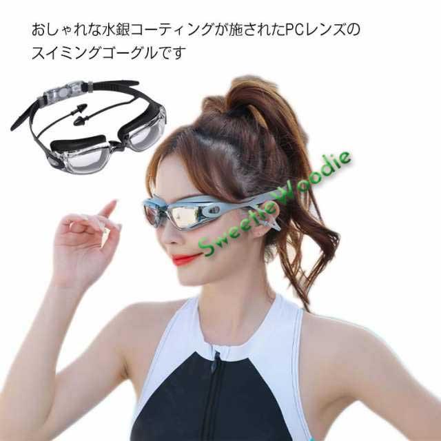 スイムゴーグル ミラーゴーグル スイミングゴーグル 耳栓付き 大人用 くもり止め UVカット 電気メッキ 競泳用 水中メガネ 水中眼鏡 水漏れ防止 メンズ レディース フィットネス おしゃれ 水泳 海 送料無料