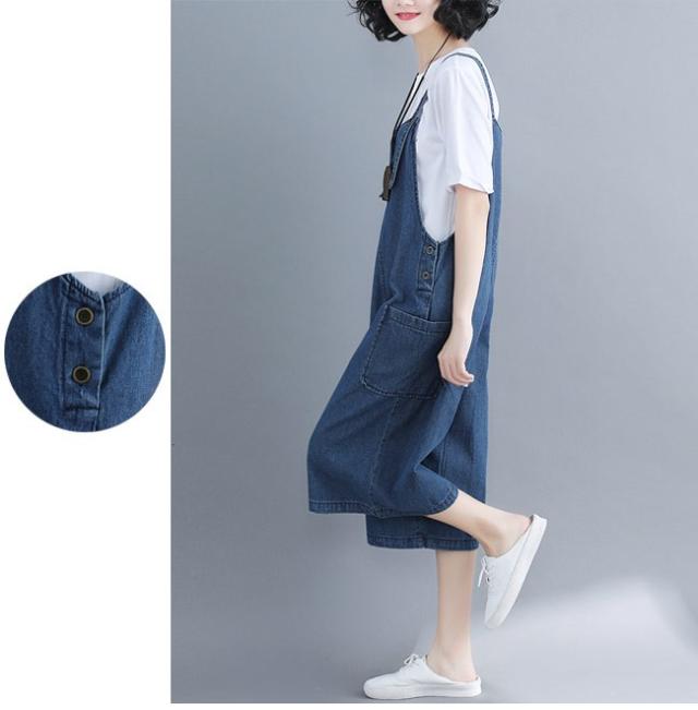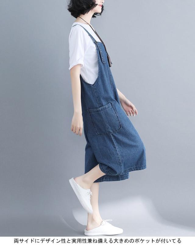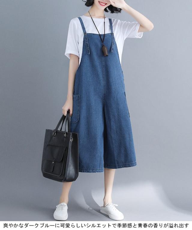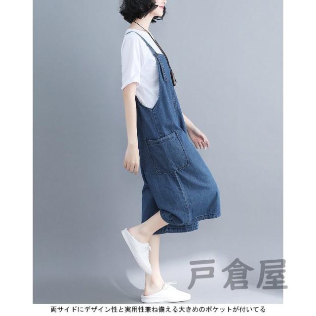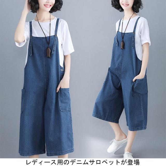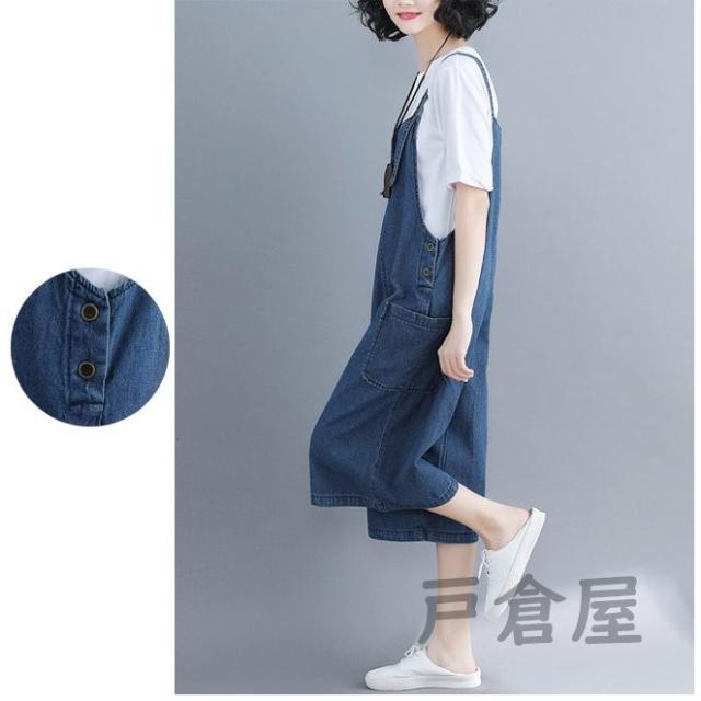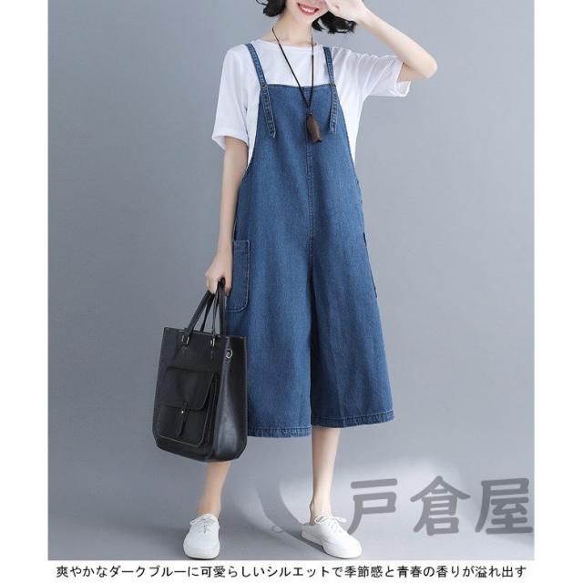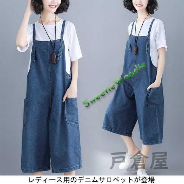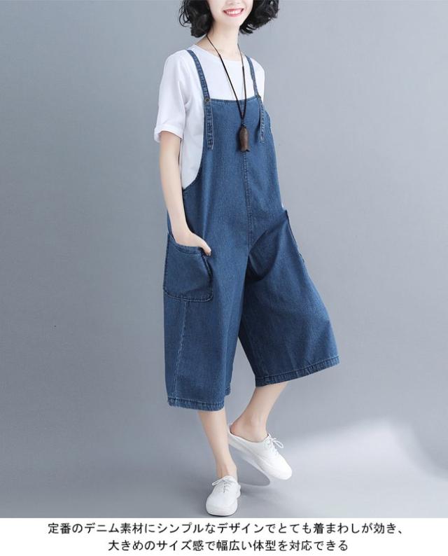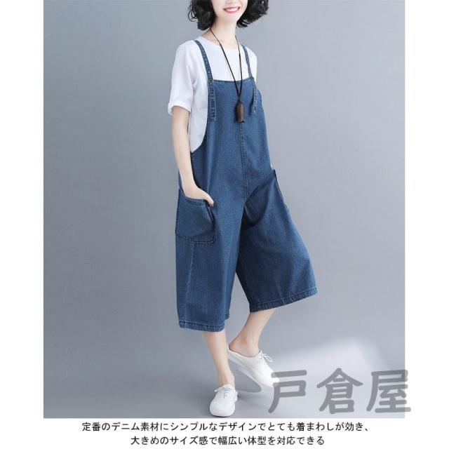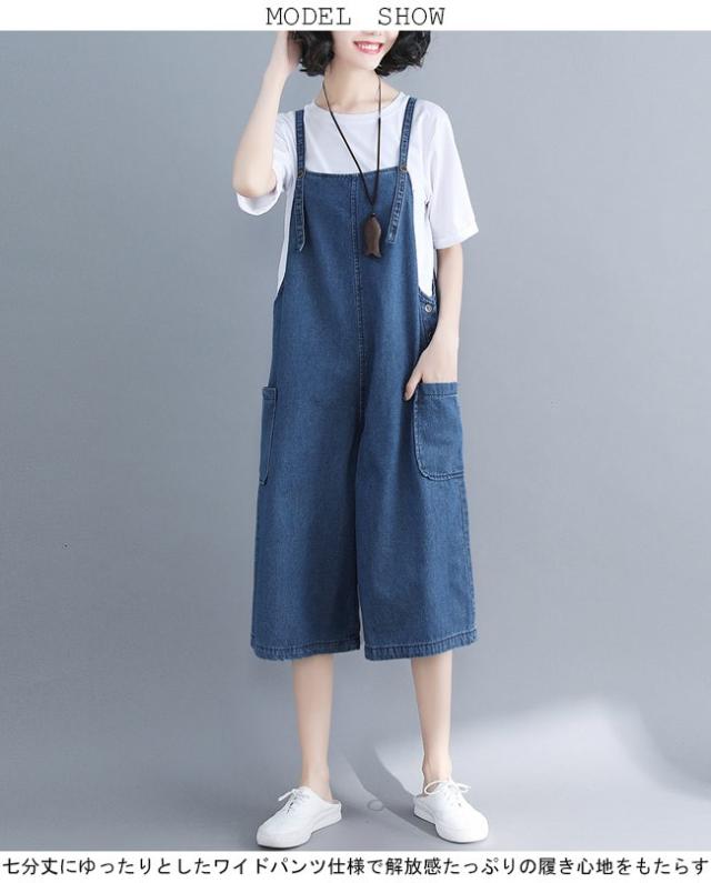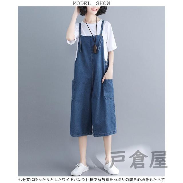 デニムサロペット レディース 七分丈パンツ ジーパン ワイドパンツ 女性用 サロペットパンツ ゆったり ジーンズ サロペット ボトムス ハーフパンツ