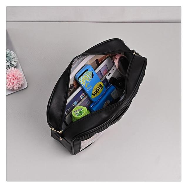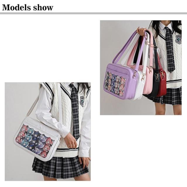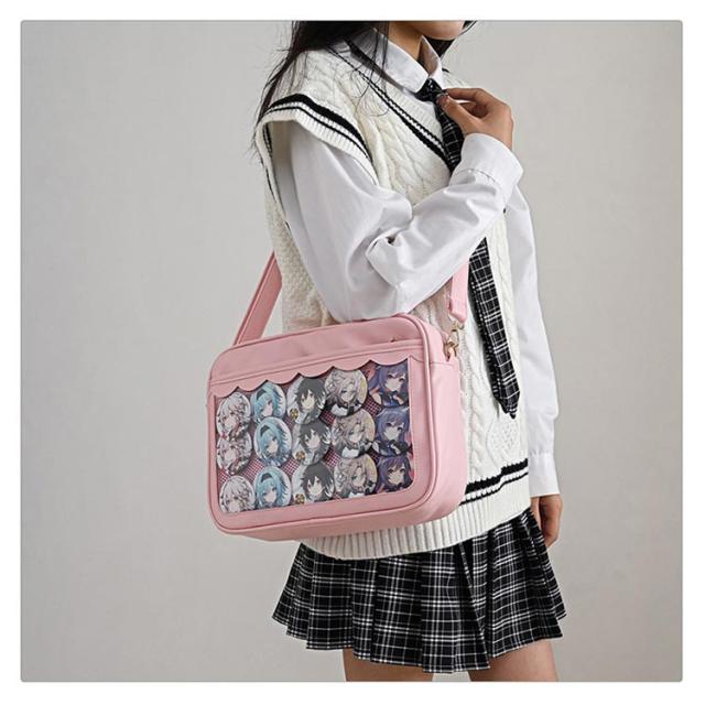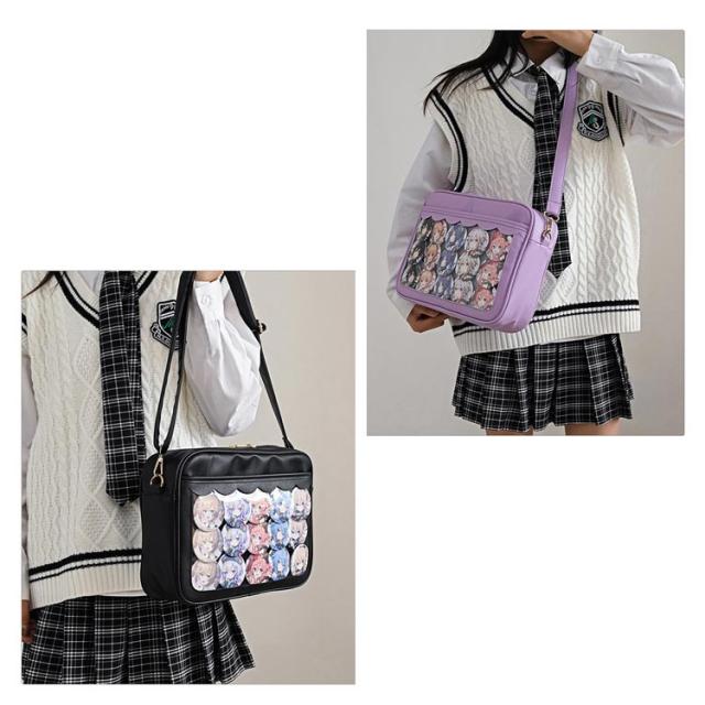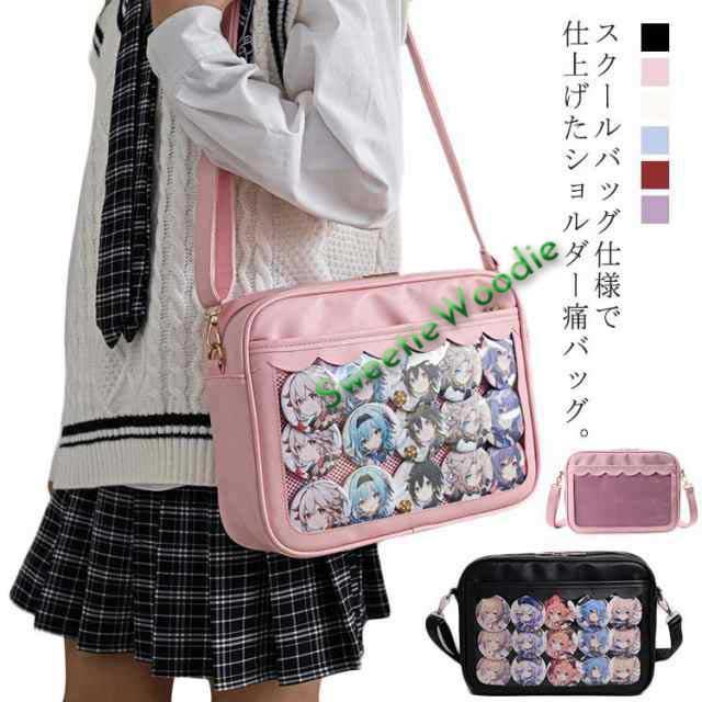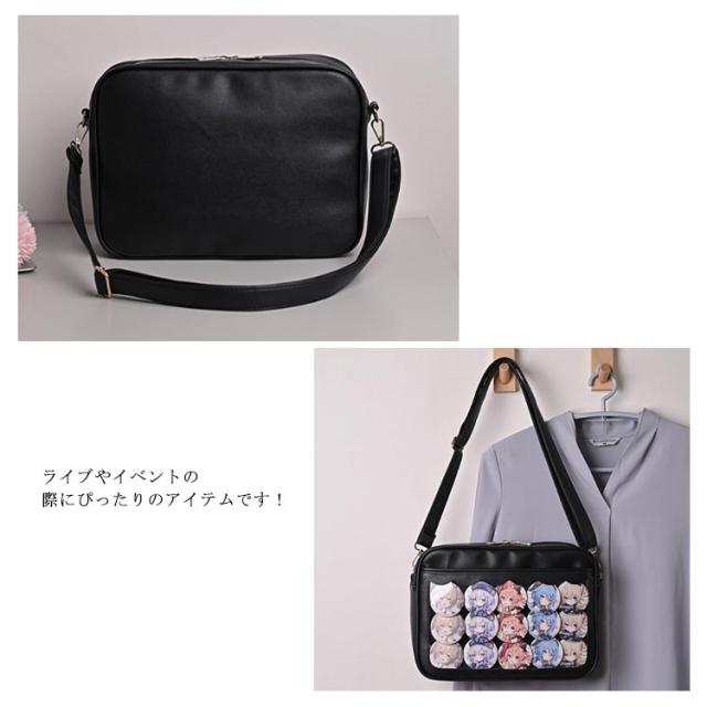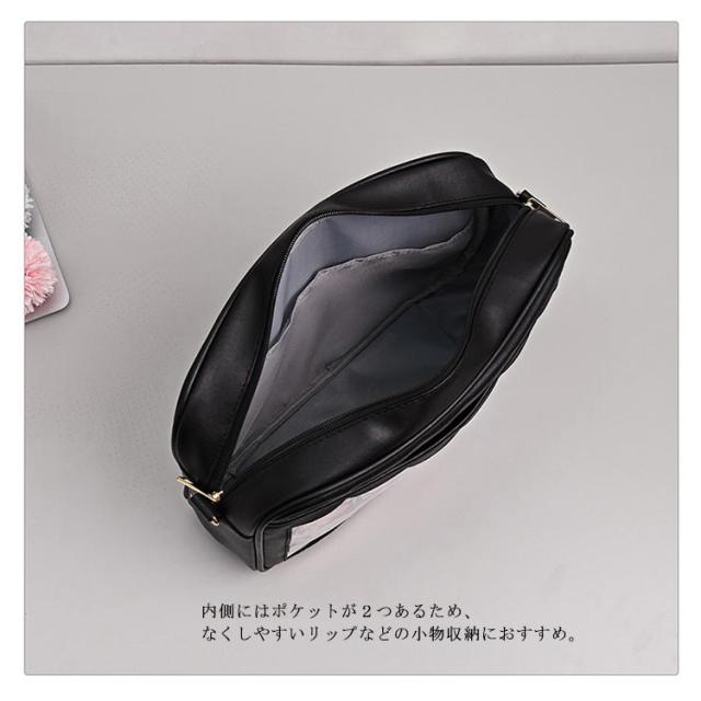 【送料無料】痛バッグ ショルダーバック フェイクレザー 痛バ ショルダー 斜め掛け A4 小さめ フリル スクールバッグ トート 痛バッグ透明 クリアバッグ 見せバッグ 缶バッジ 推し活 ライブ イベント用 かわいい おしゃれ 黒 白
