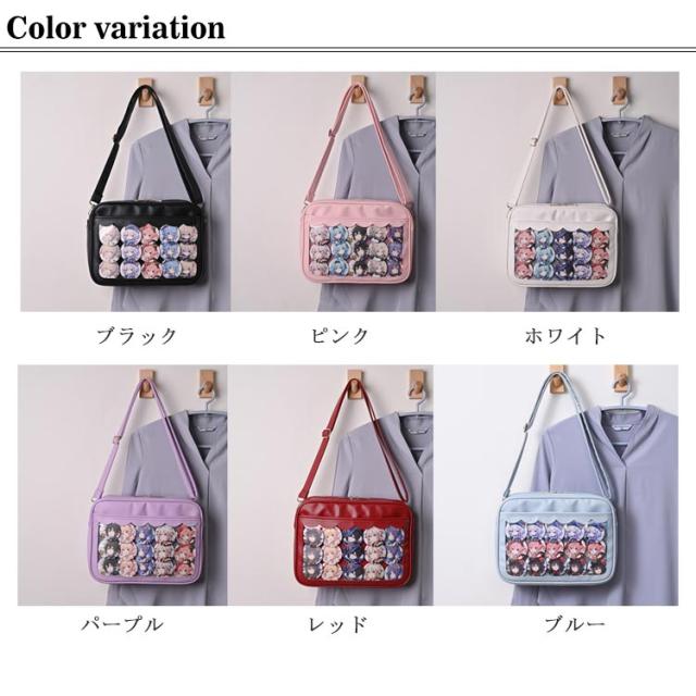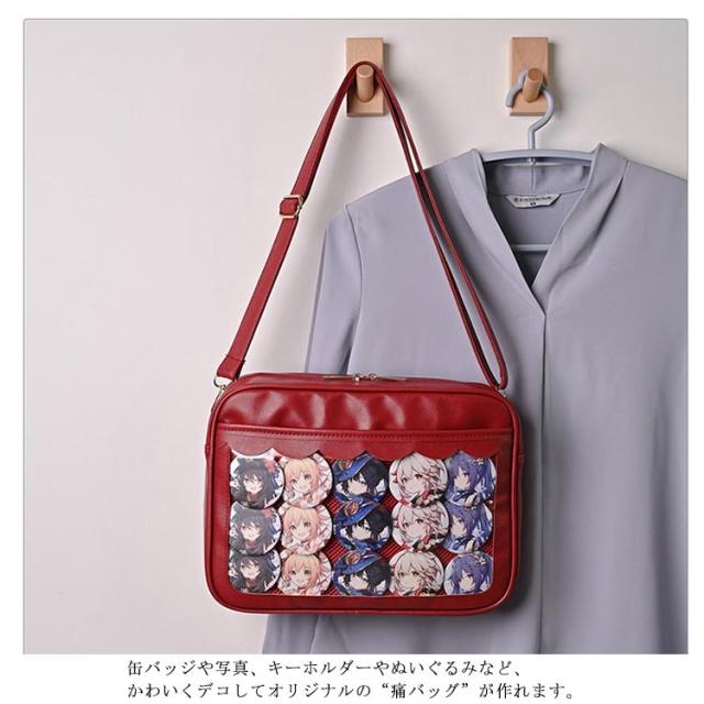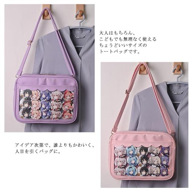 | スクールバッグ仕様で仕上げたショルダー痛バッグ。 クリア部分にはお気に入りの写真や缶バッジなどを入れられる遊び心あるひと品! 缶バッチのピンにも優しい、バッグと同色の柔らかい専用メッシュシート付き。 内側にはポケットが2つあるため、なくしやすいリップなどの小物収納におすすめ。 缶バッジや写真、キーホルダーやぬいぐるみなど、かわいくデコしてオリジナルの“痛バッグ”が作れます。 アイデア次第で、誰よりもかわいく、人目を引くバッグに。大人はもちろん、こどもでも無理なく使えるちょうどいいサイズのトートバッグです。 ライブやイベントの際にぴったりのアイテムです! カラーバリエーションも豊富なので、お友達とお揃いで合わせても可愛くてオススメ☆ | |