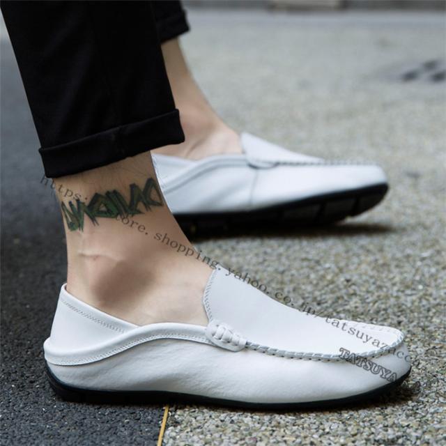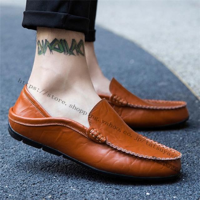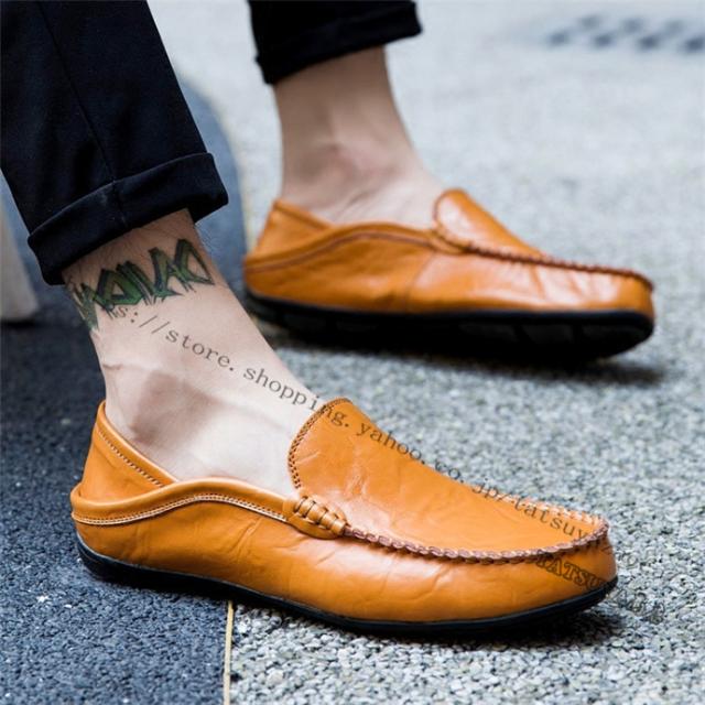 メンズ 靴 ドライビングシューズ ローファー スリッポン ビジネスシューズ かかと踏める 革靴 紳士靴 カジュアル デッキシューズ 2way履き方