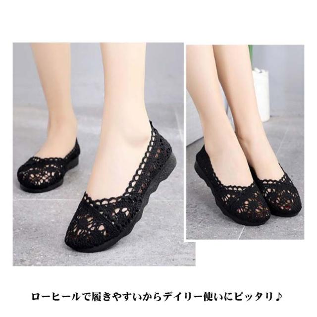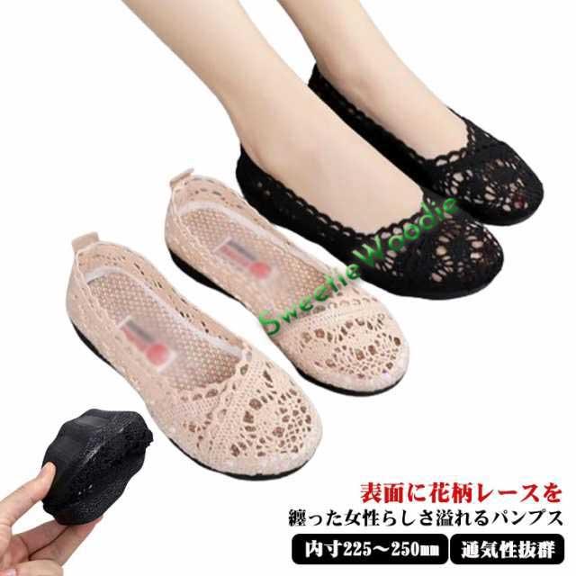 フラットパンプス 痛くない 通気 パンプス レース フラット ぺたんこ メッシュ パンプス 履きやすい レディース 軽い フラットヒール ローヒール 総レースパンプス 走れる 歩きやすい 通気性抜群 疲れない バレエ 夏 送料無料