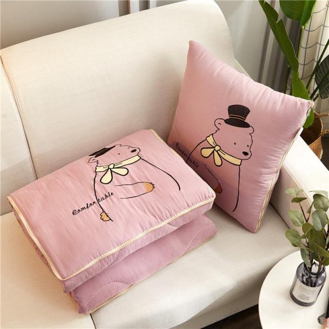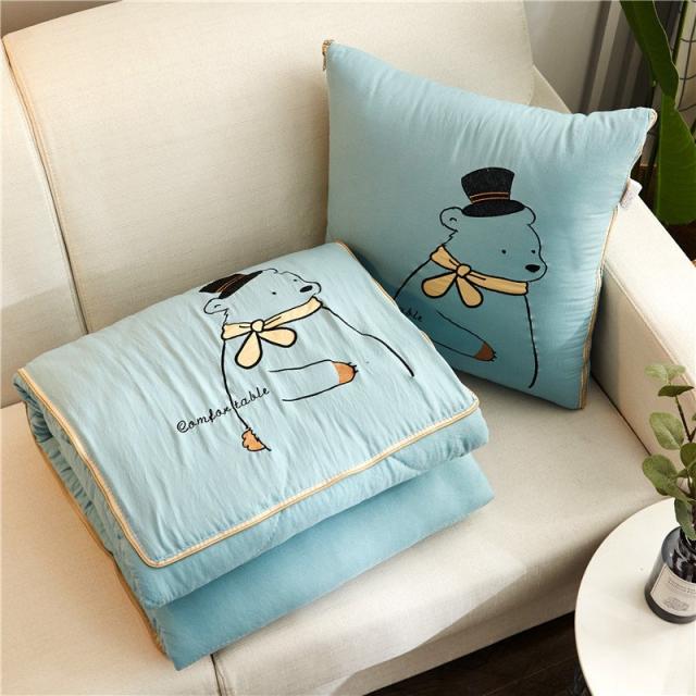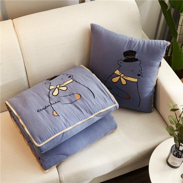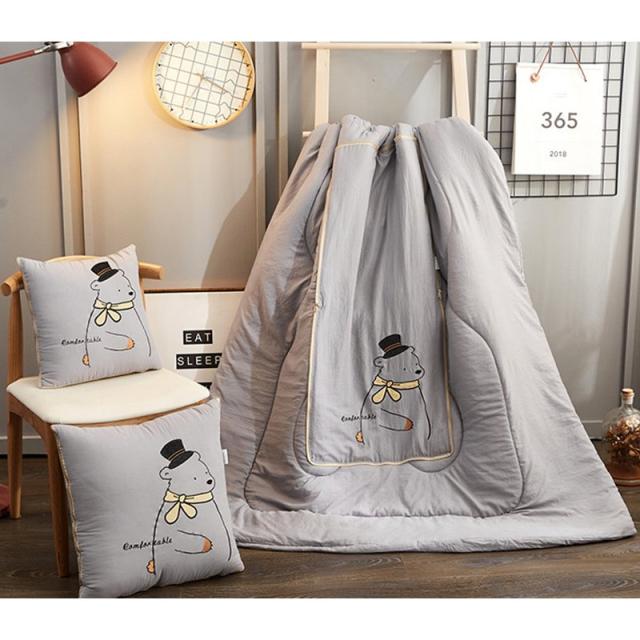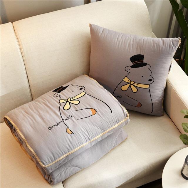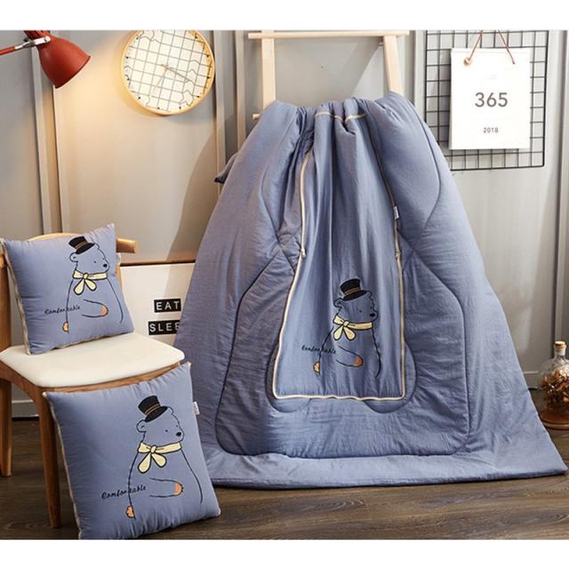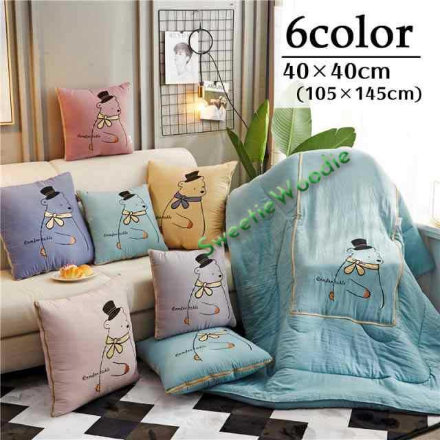 キルトケット クッションになる 2way 105 145cm ハーフサイズ お昼寝布団 寝具 綿入り クマ かわいい 正方形 収納 しまえる ひざ掛け