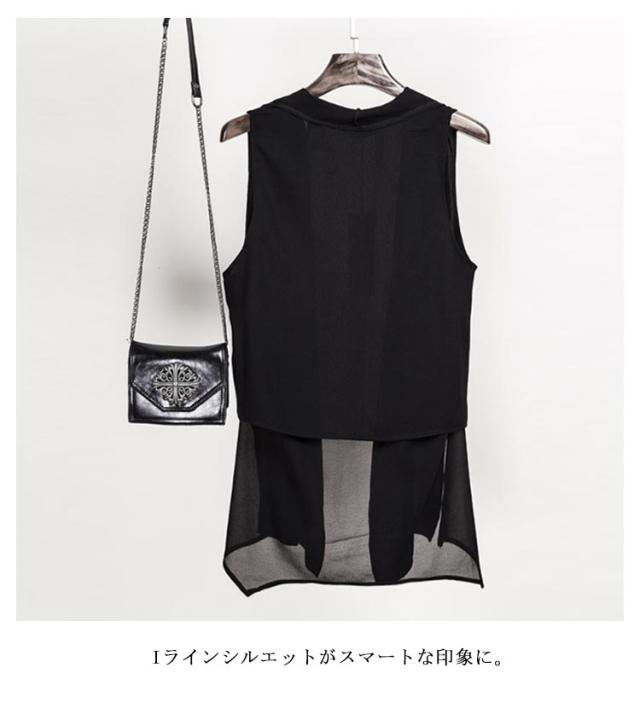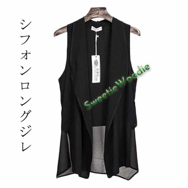 シフォン ジレ レディース ベスト シアー ロングベスト レイヤード 重ね着 透け感 チュニック サマージャケット ノースリーブ 袖なし 軽い 羽織り アシメ 変形 ドレープ 落ち感 薄手 おしゃれ きれいめ 体型カバー 通勤 春夏