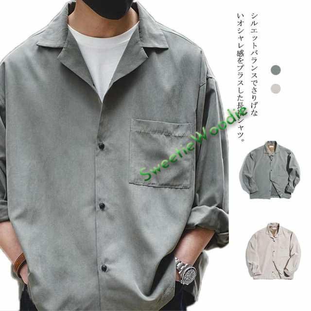 【送料無料】シャツ メンズ 長袖 オープンカラーシャツ 長袖 開襟シャツ シャツジャケット アウター コート 羽織 ドロップショルダー カジュアルシャツ スエード調 無地 おしゃれ 薄手