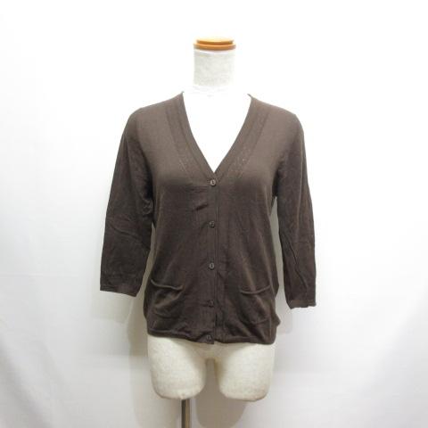 【中古】チャンセリーレーン Chancery Lane 七分袖 Vネック ニット カーディガン M 茶 ブラウン レディース