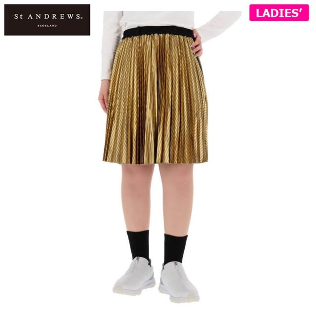 [74%OFF] ゴルフウェア セントアンドリュース レディース サテンストライプ箔プリント プリーツ スカート 043-2234008
