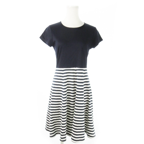 【中古】エストネーション ビス ESTNATION bis ひざ丈ワンピース 半袖 ストレッチ 切替 ボーダー 36 S 紺 ネイビー