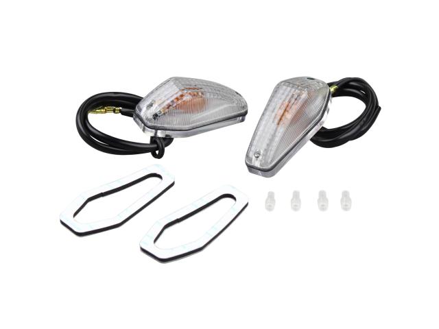◆商品名:ポッシュフェイス(POSH FAITH) バイク用品 貼り付けウインカー エアロシャープミニタイプ(2個入り) 12V15W電球付 クリアーレンズ 090012