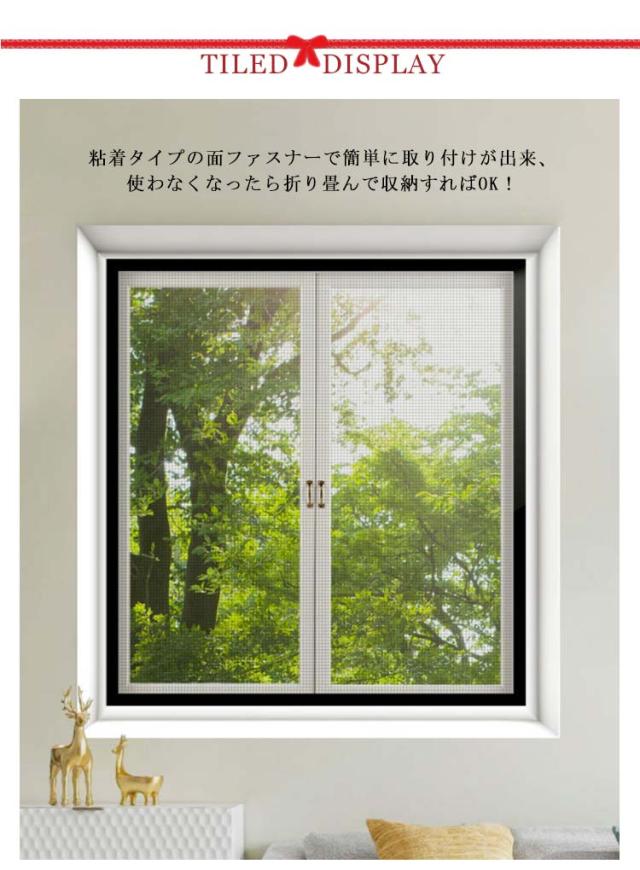 | 窓からの虫と蚊の侵入を防ぐ対策!貼るだけで簡単な網戸虫よけネット。 粘着タイプの面ファスナーで簡単に取り付けが出来、使わなくなったら折り畳んで収納すればOK! 虫やホコリの侵入を防ぎながら風通しもよく快適に過ごせます。 | |