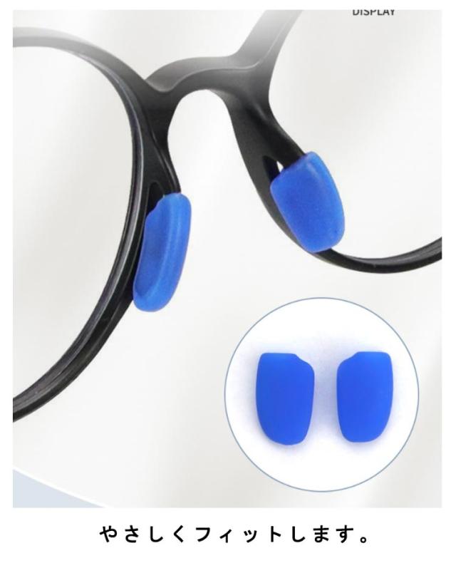 | 滑り止め、柔らかい鼻パッドです。 やさしくフィットします。 長時間メガネをかけていても痛くなりにくくメガネ跡防止にもなります。 鼻パッドが当たって痛い方や、パッドの痕が付くのが気になる方におすすめ。 | |
