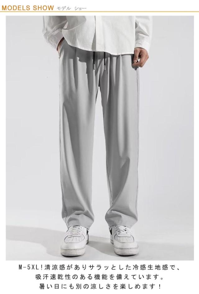 夏 アイスシルクパンツ 吸水速乾 パンツ ズボン ストレッチ ワイドパンツ 涼しい チノパン 清涼 涼感 ワイドパンツ ゴルフパンツ ゴルフウェア ビジネス メンズ 細身 スリム テーパード ロングパンツ スポーツパンツ 大きいサイズ 無地 軽量 薄手 通気