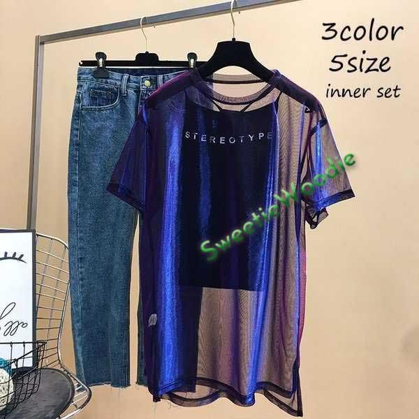 カットソー シースルー キャミソール インナー セット Tシャツ トップス 半袖 透け感 肌見せ 重ね着 ダンス 衣装 派手