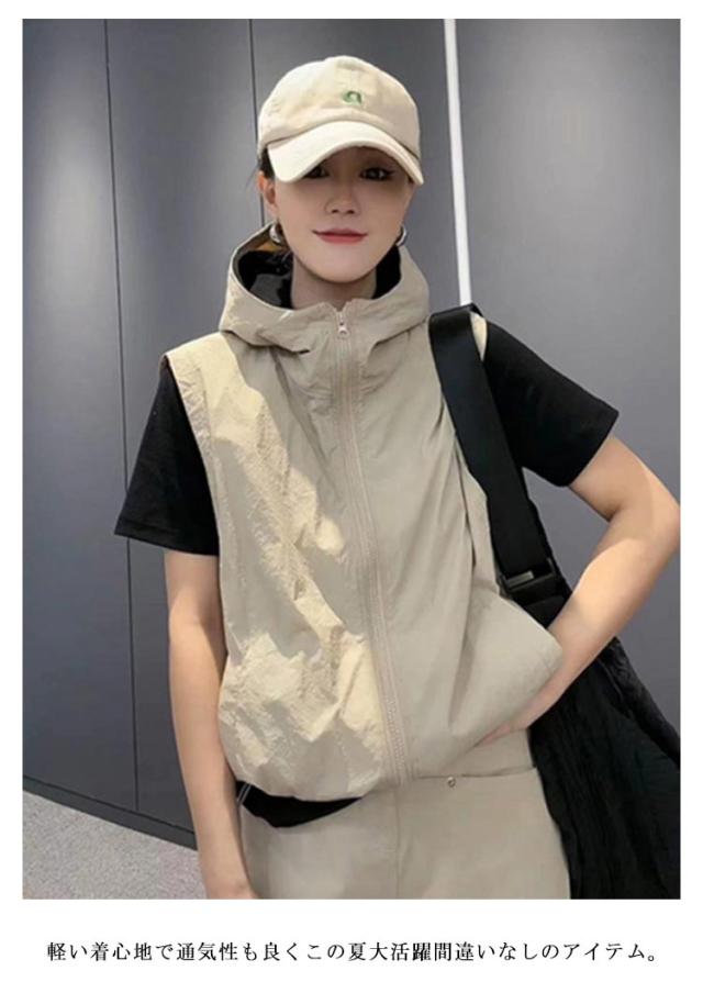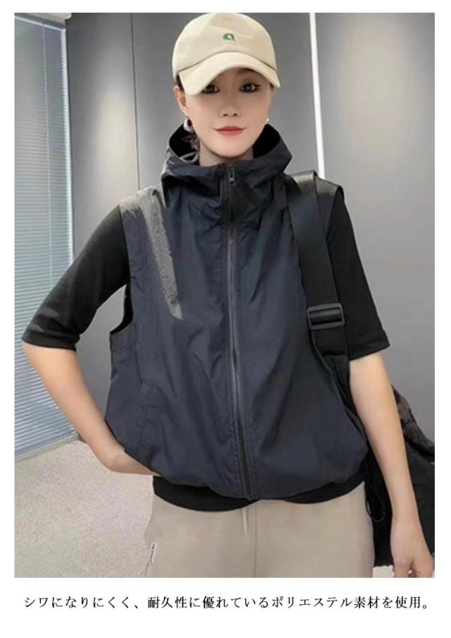 通気 ポケット付き フード付き レディース 速乾 ベスト カジュアル ジップアップ 登山服 薄手 ファスナー 作業着 スポーツ フード付きベスト アウトドア 夏 スポーツベスト 涼感 お釣り 多機能 山歩き 軽量 送料無料 おしゃれ ノースリーブ 無地 シンプル