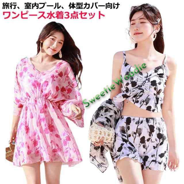 | 旅行、室内プール、体型カバー向けワンピース水着3点セット ボディーポジティブ ぽっちゃりさん応援! | |