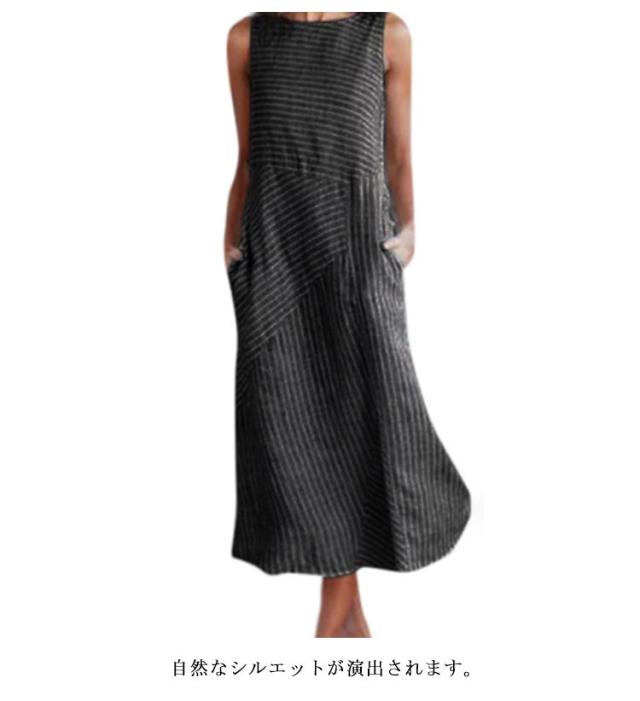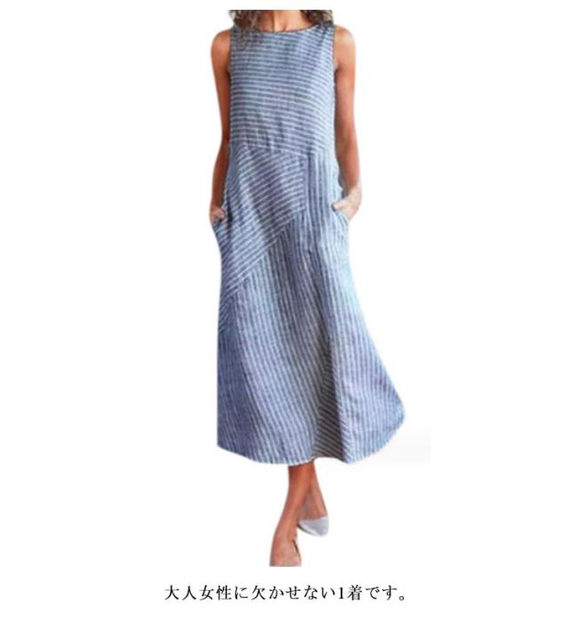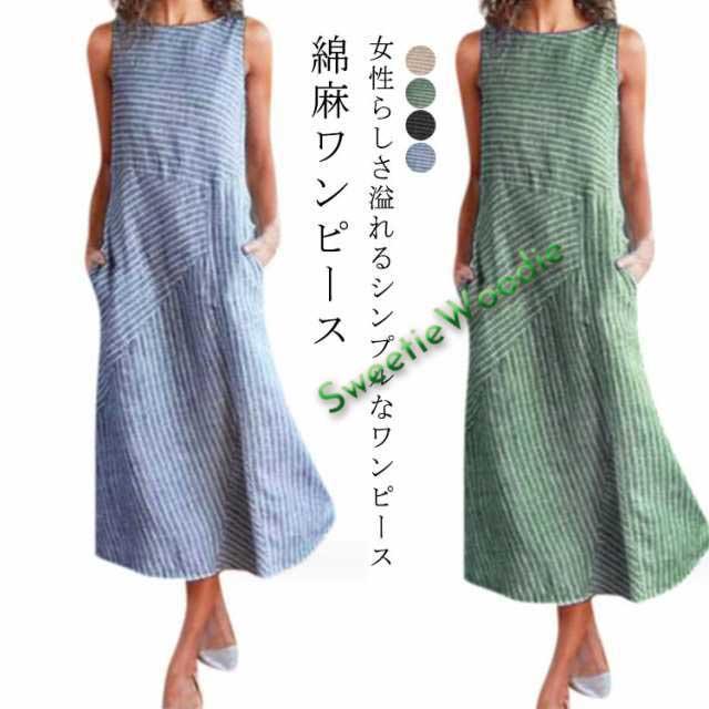 大きいサイズ 綿麻ワンピース ワンピース 涼しい ロングワンピース コットンリネン ストライプ柄 レディース ノースリーブ ナチュラル ロング丈ワンピース 夏 体型カバー 綿麻ワンピース マキシワンピース ナチュラル