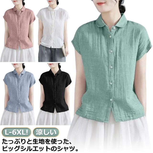 ビッグシャツ 半袖 レディース ブラウス 夏 半袖 コットンリネン 薄手 着心地 シャツブラウス シャツ 綿麻ブラウス リネンシャツ 涼しい ゆったり ゆったり カジュアル リネン 柔らかい 大きいサイズ 春 L XL 2XL 3XL 4XL 5XL 6XL