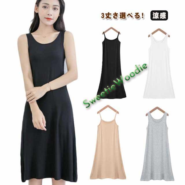 キャミソールワンピース 下着 接触冷感 3丈さ選べる!スリップ インナーワンピース 静電気防止 3丈さ選べる!スリップ 肌着 ペチコート シンプル 無地 キャミワンピ 透け防止 膝丈 春 夏 秋 おしゃれ 部屋着