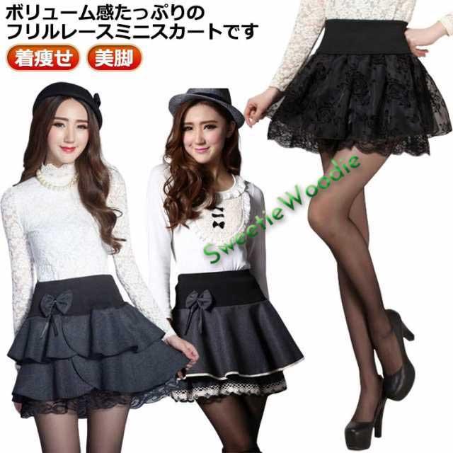 膝上 フリル ウエストゴム ミニスカート ハイウエスト 地雷系 レディース スカート ギャル ロリータ フレア ミニ 可愛い レース 量産型 プリーツ 美脚 Aライン ティアード 着痩せ 原宿系 春 夏