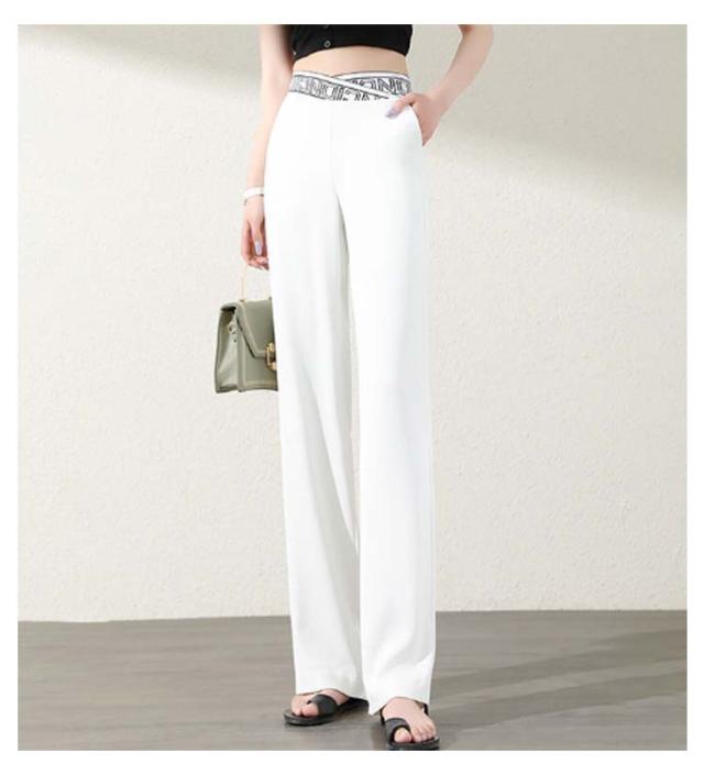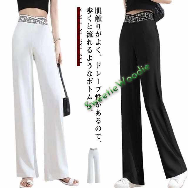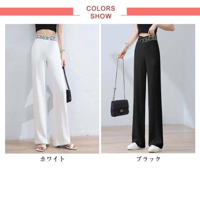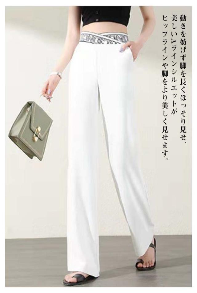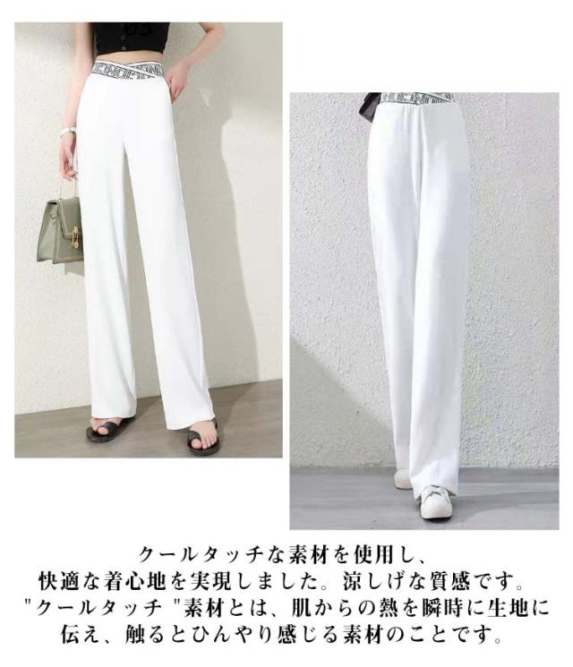 スラックス レディース ストレートパンツ アイスシルク パンツ 接触冷感 ワイドレッグ 接触冷感 夏 スーツパンツ ワイドパンツ 長ズボン ハイウエスト ルーズ ドレープモップ 春 ロングパンツ ゆったり カジュアル 脚長効果