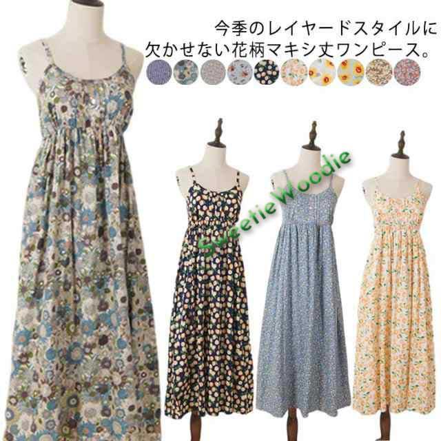 キャミソールワンピース 花柄ワンピース 夏 リゾートワンピース マキシワンピース ロングワンピース 花柄 プリントワンピース マキシ丈 ロング丈 コットン フレアワンピース ノースリーブ Aライン おしゃれ かわいい 送料無料