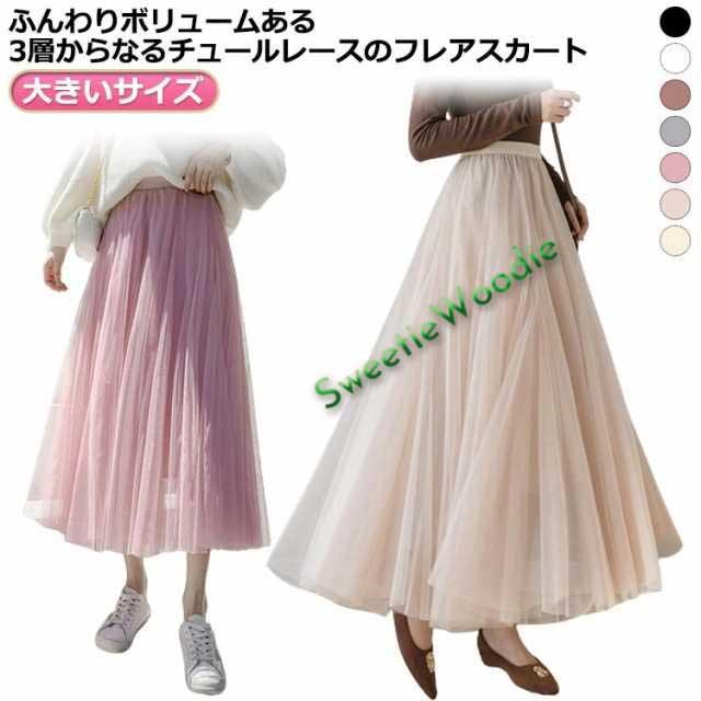 裏地あり プリーツ レース ウエストゴム 3層 ハイウエスト ボリュームのある 春夏秋冬 ロング丈 ボリュームのある 大きいサイズ チュールスカート スカート 韓国 ダンス衣装 大人 原宿系 おしゃれ きれいめ 体型カバー 可愛い