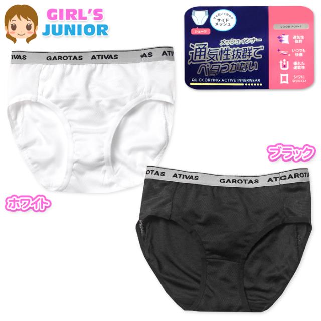【送料無料】女児 ジュニア サイドメッシュ ショーツ エステルベア天 通気性 速乾 ストレッチ 肌着 下着 インナー 子供 女の子 140cm 150cm 160cm 165cm yg-3008【メール便対応】