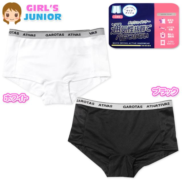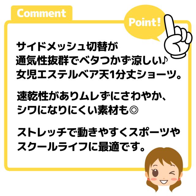 【送料無料】女児 ジュニア サイドメッシュ 1分丈 ショーツ エステルベア天 通気性 速乾 ストレッチ 下着 子供 女の子 140cm 150cm 160cm 165cm yg-3014【メール便対応】