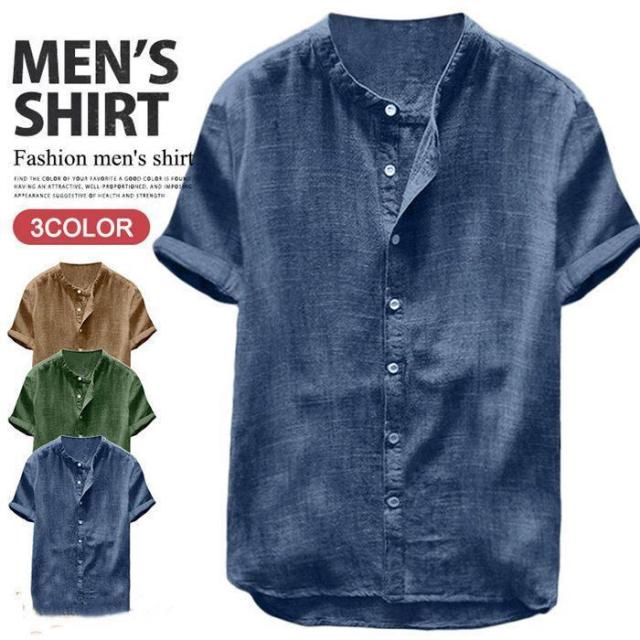 シャツ メンズ 開襟シャツ 半袖 リネンシャツ 無地 メンズファッション 半袖シャツ 夏服