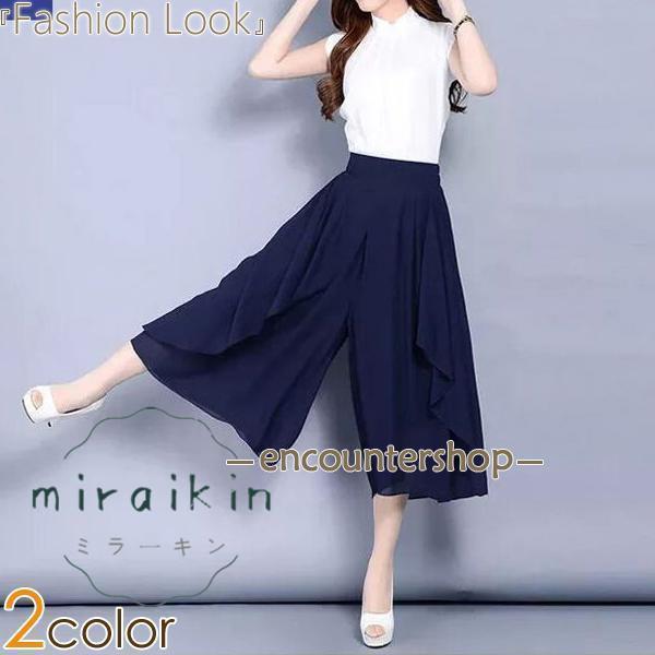 ガウチョパンツ スカーチョパンツ シフォン ひらひら 七分丈 ウエストゴム入り レディース トップス ひらひらシフォンスカーチョパンツ 夏 新作