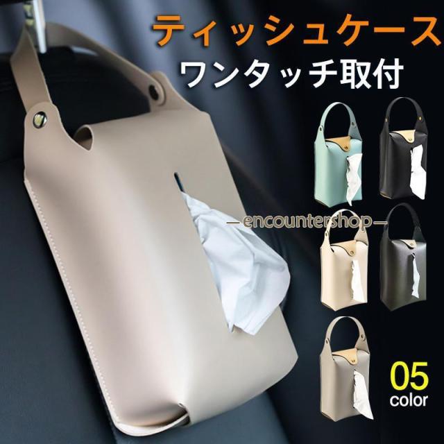 ティッシュケース 車用 吊り下げ ティッシュホルダー ティッシュカバー コンパクト ワンタッチ取付 箱ごと入る 壁掛け 収納 車 自宅用 北欧 高級感