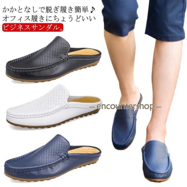 メンズ メッシュ シューズ スリッポン かかとなしシューズ サボサンダル サンダル モカシンシューズ ビジネスシューズ ビジネスサンダル 紳士靴 通気
