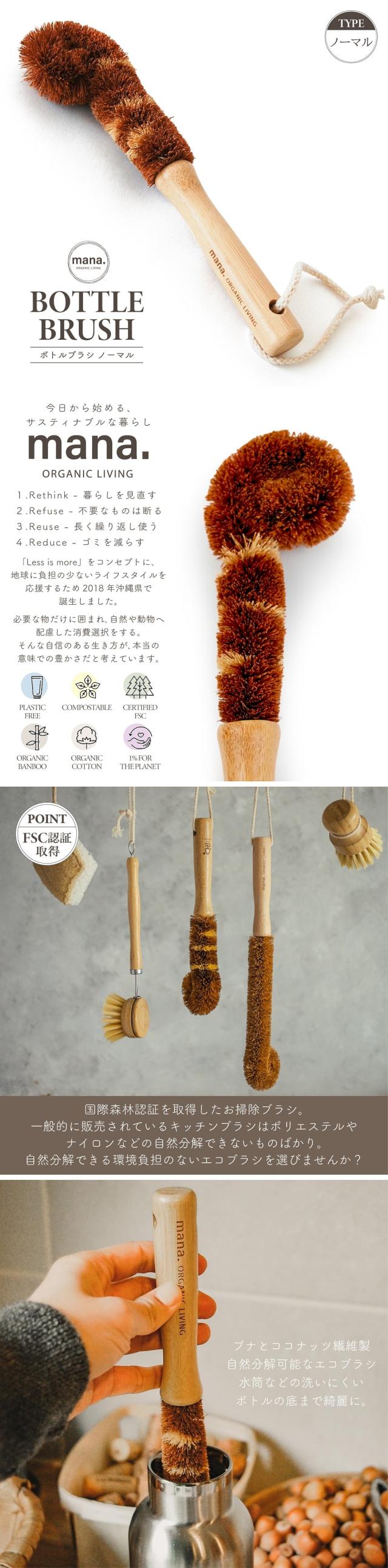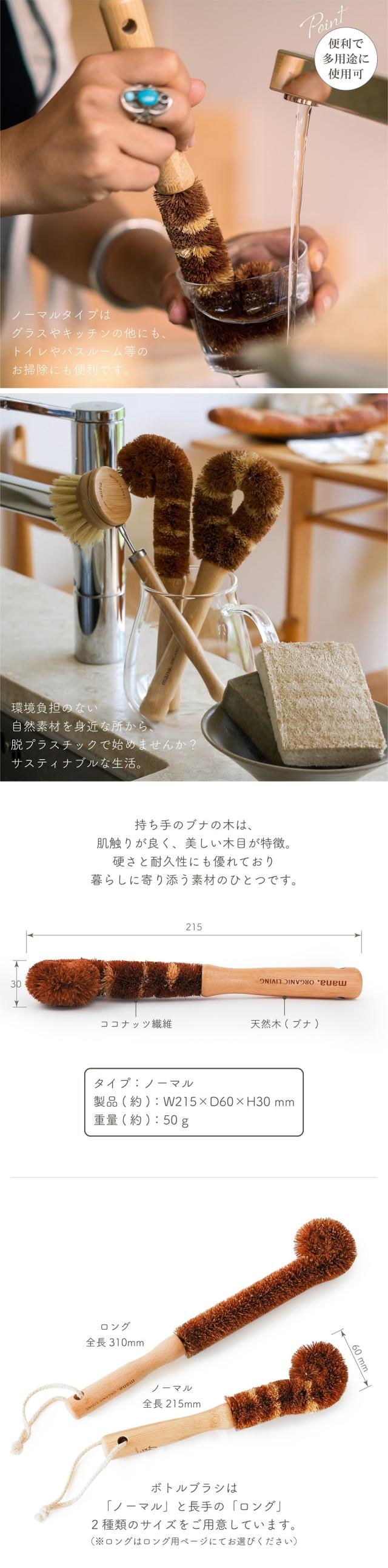 キッチンブラシ mana. ボトルブラシ ノーマル 全長21.5cm ブナ・ココナッツ繊維製 水筒 グラス 掃除ブラシ 自然素材 国際森林認証 柄付ブラシ 柄付たわし 掃除用品 キッチン用品