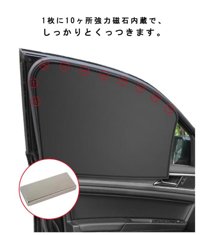 磁力 遮光 取り付け UVカット サンシェード カーテン 車用 吸盤 日よけカーテン 車用 マグネット式 サンシェード 日焼け対策 リアカーテン 4点セット 紫外線対策 車用 断熱 自動車 猛暑 酷暑 便利グッズ プライバシー保護