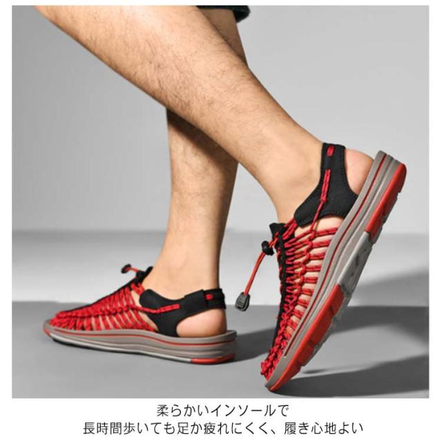 | スポーツサンダル 22.5-29cm 編み仕様の優れた通気性で、足が蒸れるストレスから解放され、快適な履き心地を実感できる 滑り止め効果がありますから、日常使いや雨の日でも適用 柔らかいインソールで長時間歩いても足か疲れにくく、履き心地よい | |