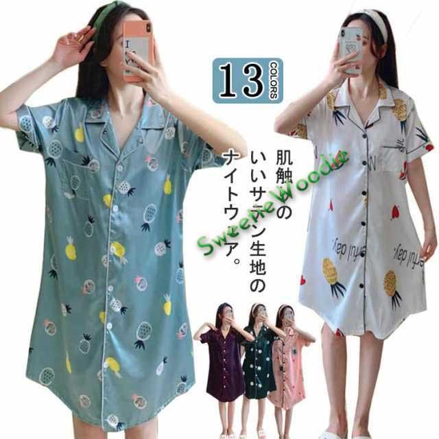 パジャマ ワンピース 前開き 春 秋 夏 サテン パジャマ ワンピース ランジェリー ロング丈 無地 シルクタッチ レディース ルームウェア 産後 マタニティ 女性 女の子 ママ 大人 可愛い かわいい セクシー 大きいサイズ