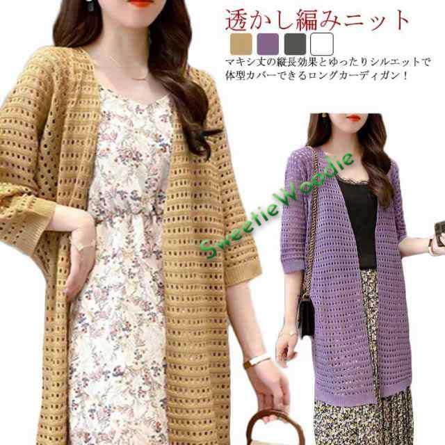 | マキシ丈の縦長効果とゆったりシルエットで体型カバーできるロングカーディガン! 肌触りが柔らかく、やみつきになるニット素材。 ゆったりとした五分袖で気になる二の腕をカバー!紫外線や室内の冷房対策にも◎! 表情豊かな透かし編みがお洒落な雰囲気を演出してくれます。 トップスとしても羽織としても大活躍! | |
