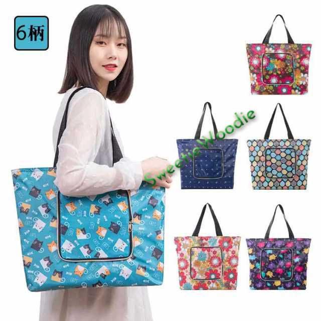 エコバッグ ショッピングバッグ 猫柄 エコバック 折りたたみ ファスナー仕様 レジカゴ トートバッグ サブバッグ ポケット付き 送料無料
