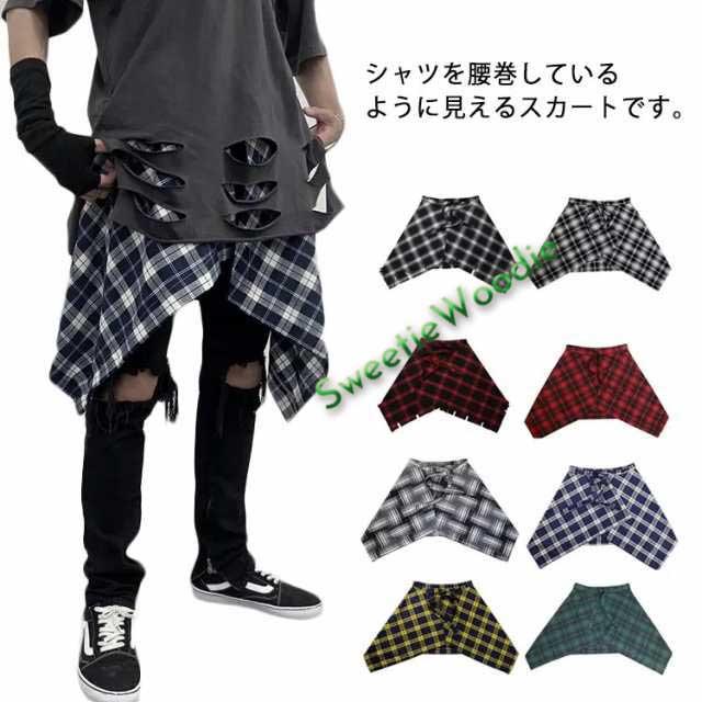 | シャツを腰巻しているように見えるスカートです。 ウエスト部分についている袖を前で軽く結ぶだけ! 腰巻き&スカート丈がランダムになっているので、体型カバーにも! 全3色、ビンテージなチェック柄。 裾部分にダメージ加工しています、ストリート感アップ! デイリー使いはもちろん、ダンス、稽古着のコーデにもおすすめです。 | |