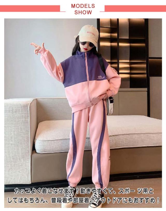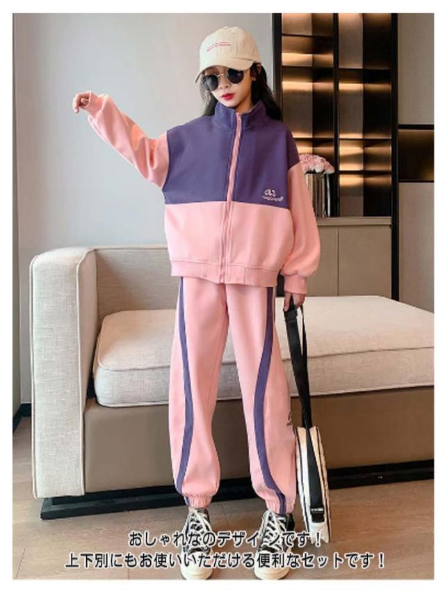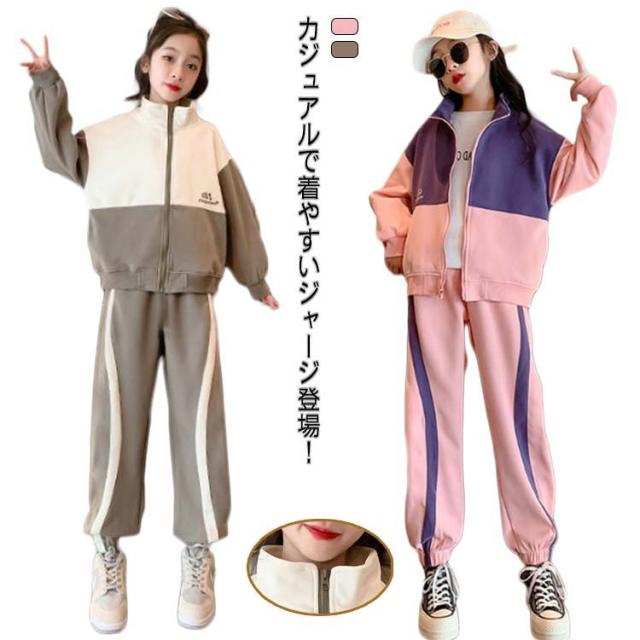 スウェット 修学旅行 キッズ 上下セット ジュニア 子供ジャージ 女の子 長袖 春秋 長ズボン 2点セット スポーツウェア ガールズ トレーナー 子供ジャージ カジュアル ジッパー付き 林間 キャンプ 子供服 ヒップホップ