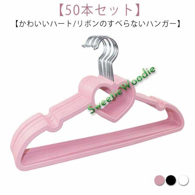 50本セット ハート ハンガー すべらない すべらないハンガー リボン オシャレ スカート ズボン 収納 ステンレス ラック コンパクト かわいいハートのすべらないハンガー 衣類をすっきり収納 10本セット 黒 白 ピンク ブラック ホワイト