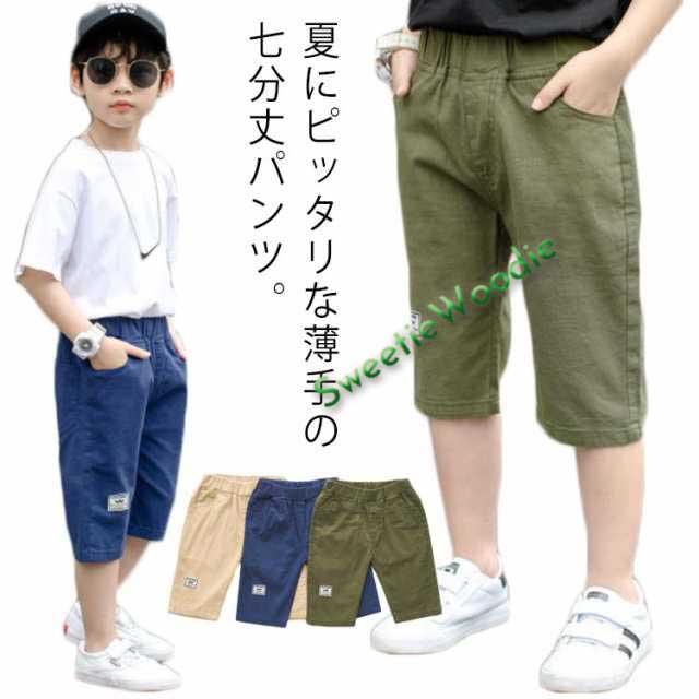 パンツ 男の子 キッズ 七分丈パンツ クロップドパンツ ショートパンツ ハーフパンツ 綿麻 薄手 カジュアルパンツ ゆったり ウエストゴム 無地 ボトムス 子供服 ジュニア 小学生 中学生 膝下 クロップド ズボン 夏 シンプル 通学 お出かけ 110-170 送料無料