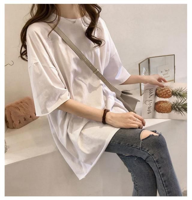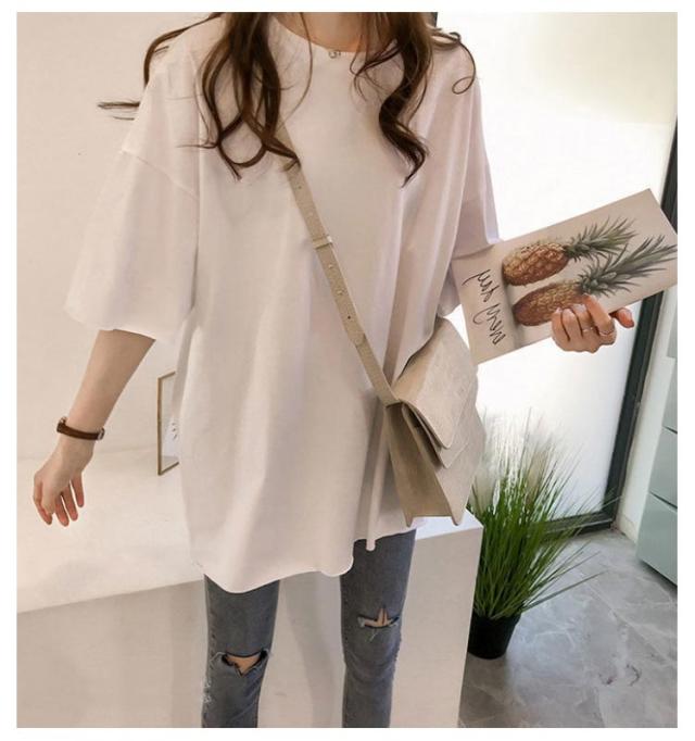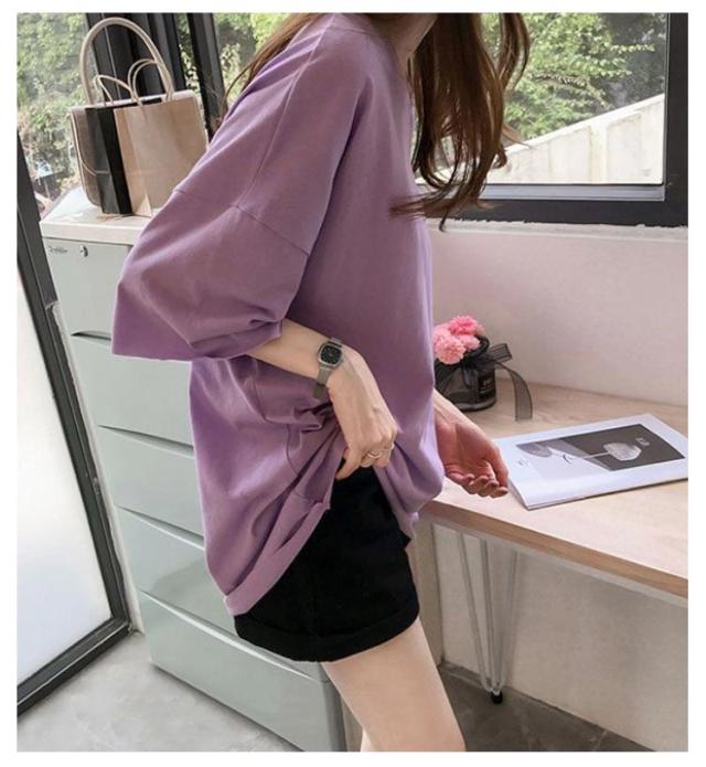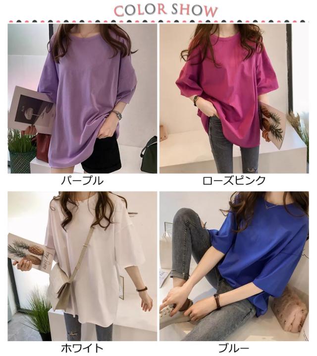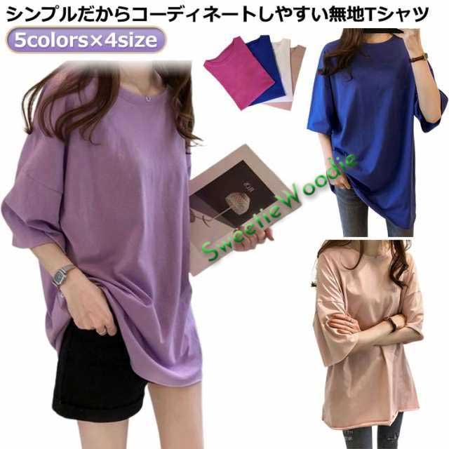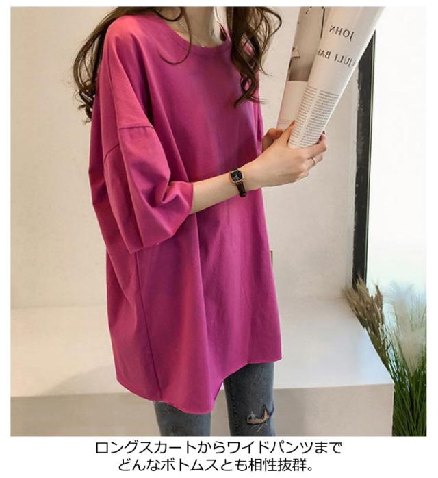 ビッグシルエット ゆるT Tシャツ 無地Tシャツ 夏 ロングTシャツ ゆったり サイズ 大きい 春 半袖 体型カバー 無地 トップス tシャツ レディース 薄手 女性 5分袖 プルオーバー シンプル 通勤 通学