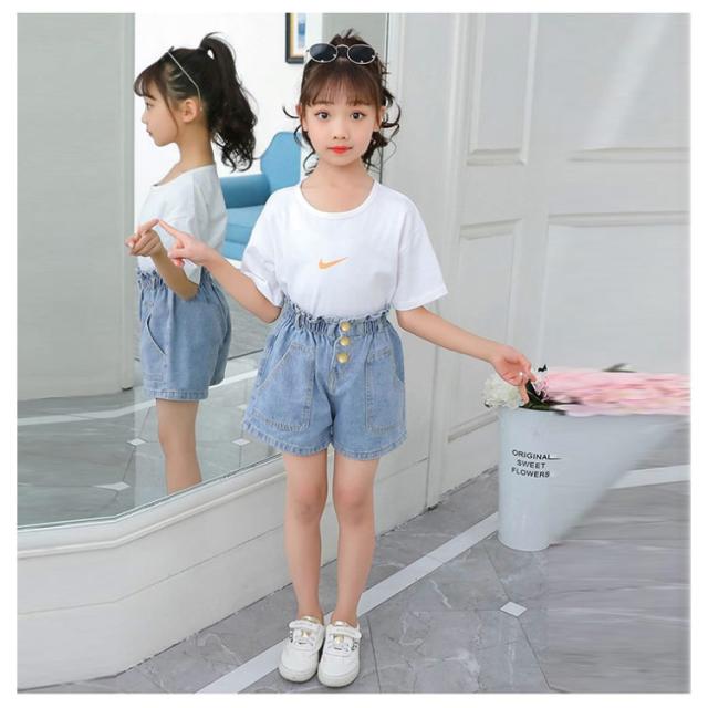 夏着 キュロット ワイドパンツ 女の子 半ズボン デニム キッズ ズボン こども 子供 デニムショートパンツ 子供服 デニム ジュニア ボトムス 子供服 ガールズ ガウチョパンツ ショートパンツ 女児用 おしゃれ 可愛い カジュアル