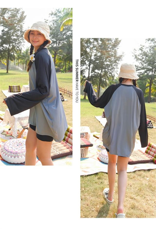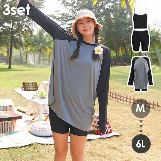 水着 タンキニ レディース 体型カバー 大きいサイズ 中学生 高校生 3点セット長袖シャツ ラッシュガード ママ水着 セパレート ぽっちゃり 10代 20代 韓国 小胸 二の腕カバー 露出控えめ 女の子 30代 40代 海 プール リゾート おしゃれ 可愛い カバーアップ ds033d7d7ld