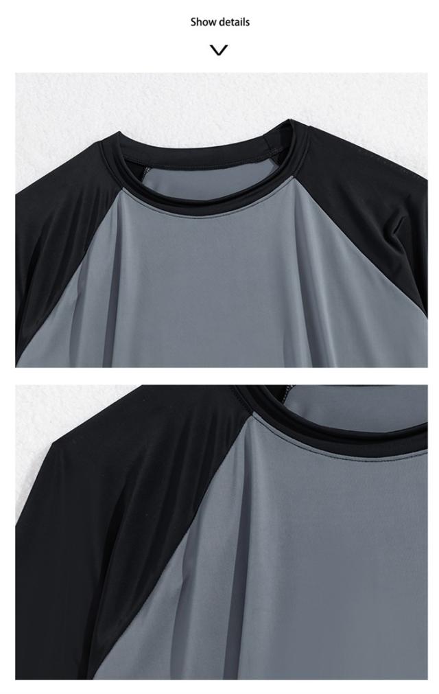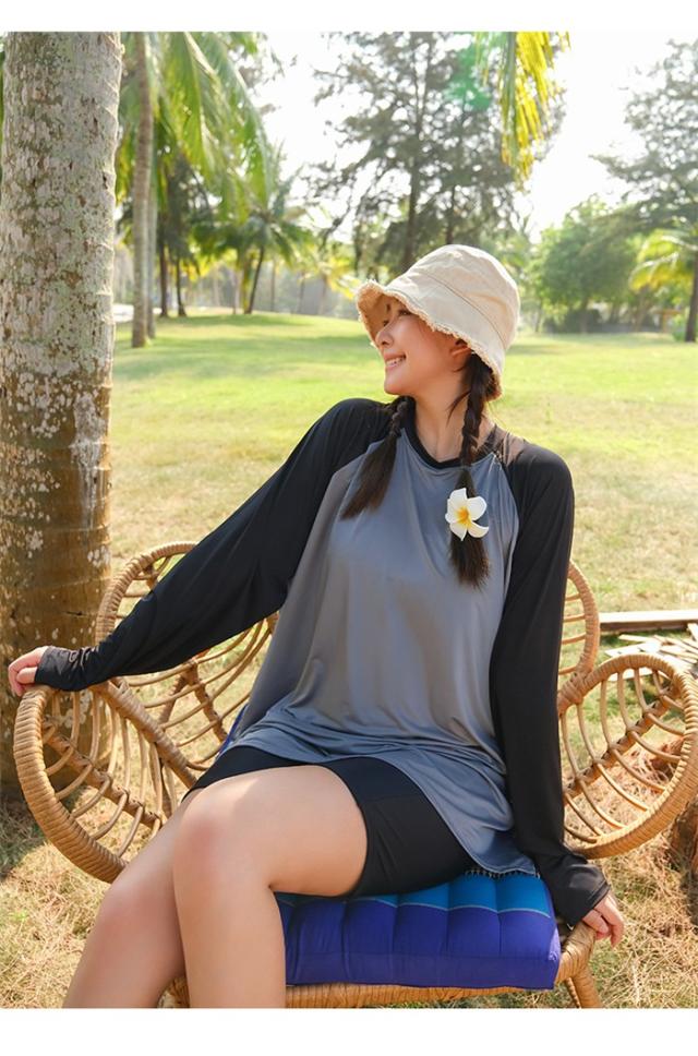 水着 タンキニ レディース 体型カバー 大きいサイズ 中学生 高校生 3点セット長袖シャツ ラッシュガード ママ水着 セパレート ぽっちゃり 10代 20代 韓国 小胸 二の腕カバー 露出控えめ 女の子 30代 40代 海 プール リゾート おしゃれ 可愛い ブラック×グレー M-5XL