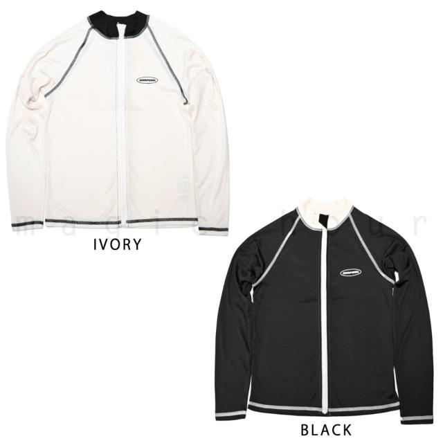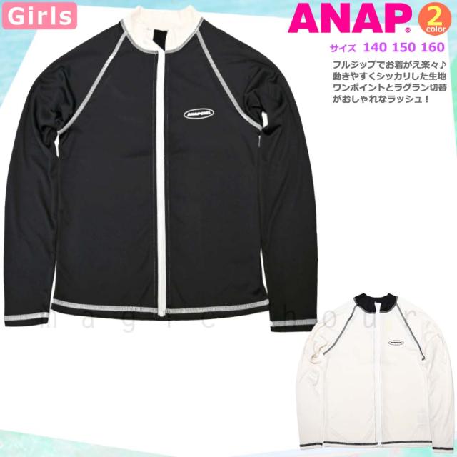 送料無料 ラッシュガード キッズ 子供 長袖 UVカット 水着 女の子 ANAP ガールズ ブランド ジップアップ パーカー 女の子 アイボリー 黒 ブラック 140 150 160